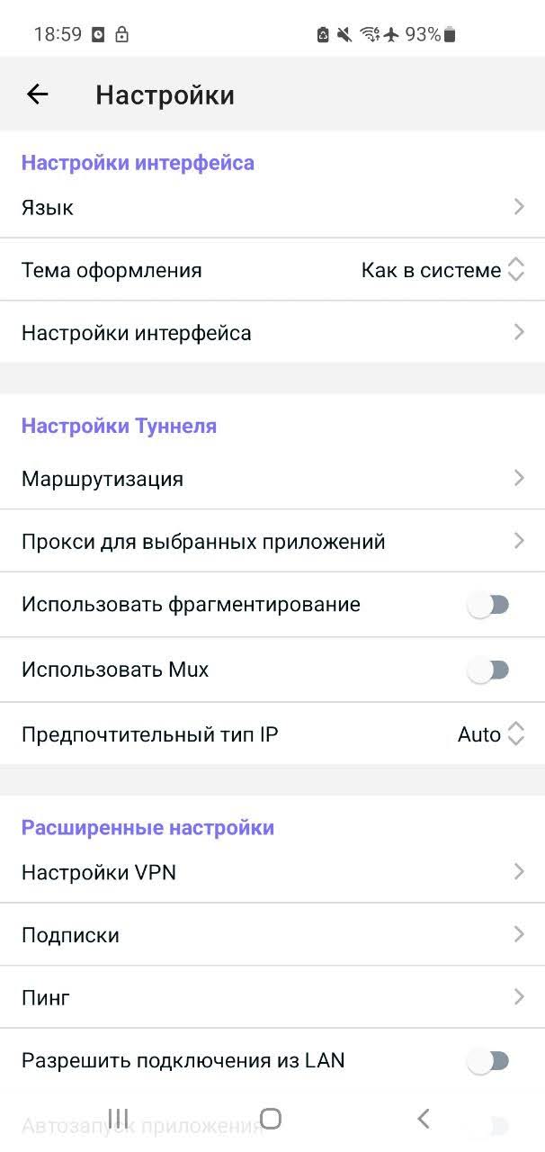 Открой приложение Happ и нажми на иконку шестеренки в левом верхнем углу. Откроются «Настройки». Выбери там «Подписки».